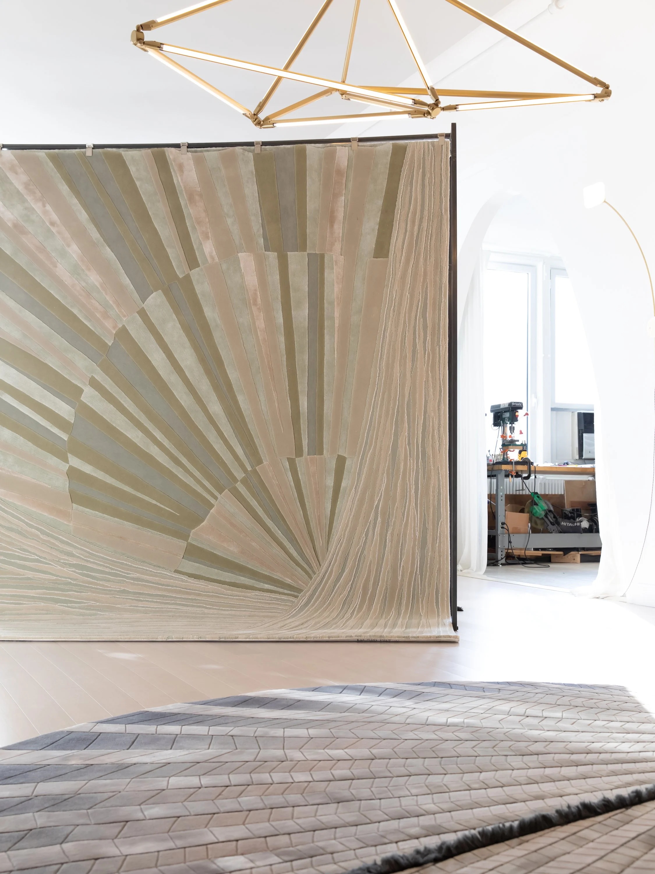 Taxonomy explores the underlying structures and functions of the natural world with lush textures and stunning layers of materiality. Throughout these nine hand-tufted designs in wool and silk, fascination with arcane corners of scientific fields, such as geology and entomology, evokes an expansive, primal landscape. Against this backdrop, organic geometries are unearthed and unexpected paradoxes inspired by everything from the minutiae of insect anatomy to pleating techniques. Ultimately, Taxonomy is rooted in an inquiry to understand function through classification, continuing to investigate transcendent themes of nature while re-contextualizing the science of taxonomy, not as a limiting or separating force, but as a means of revelation.